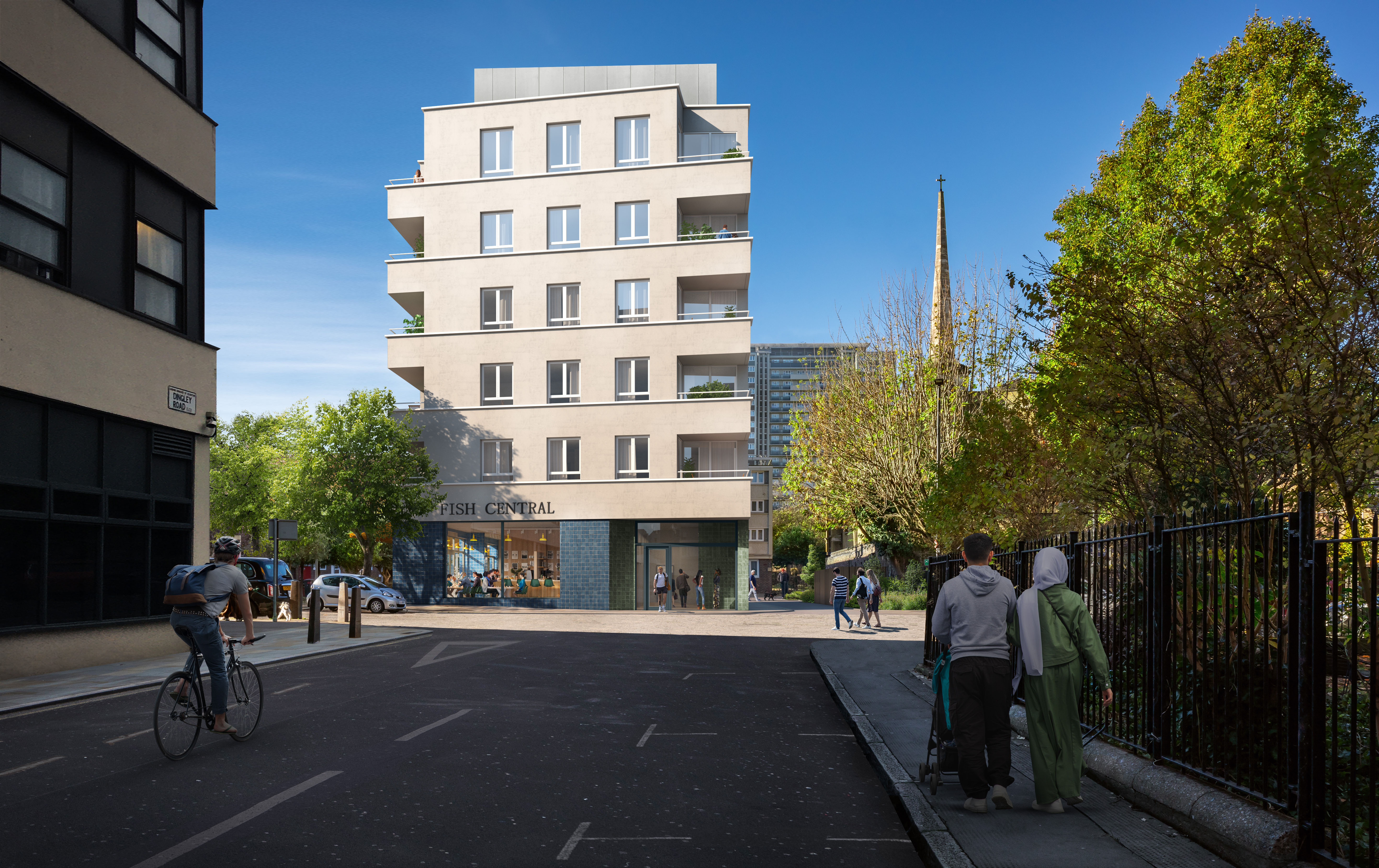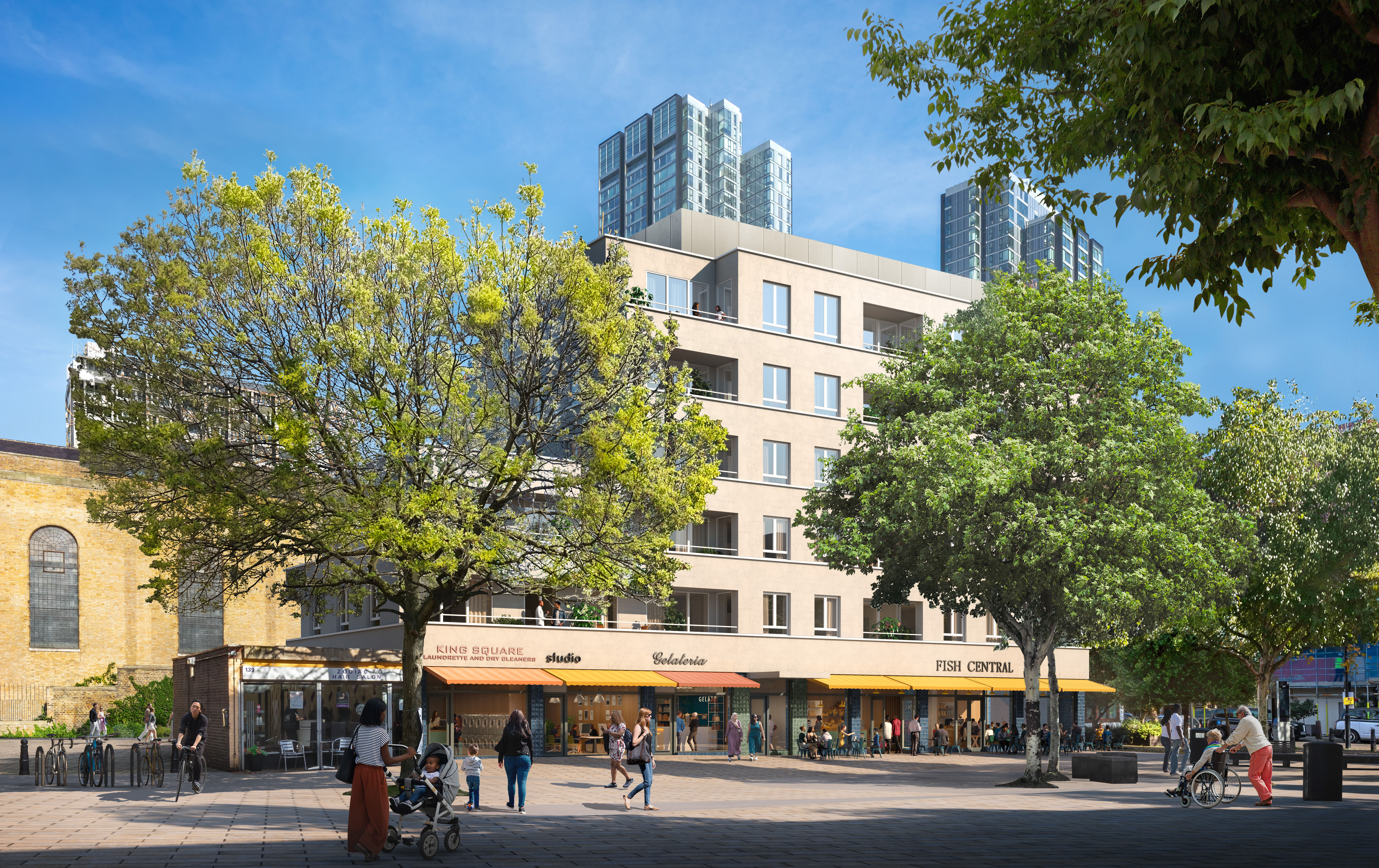 CMA are delighted to have secured approval from the London Borough of Islington's Planning Committee for the redevelopment of 141-155 Central Street, King Square, on behalf of the Hussein family. The Hussein family are pillars of the local community and their presence dates back to 1968, when George Hussein opened Central Fish Bar in King Square. Over the following years the Hussein family acquired the adjacent commercial spaces and these shops and businesses, which currently include their Fish Central restaurant, are an important hub for the local community.