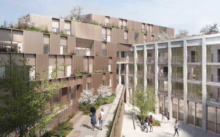 The Trego Road scheme, which was designed by pH+ Architects in collaboration with BD Landscape, will see the site redeveloped to provide a new building of outstanding architectural quality that rises to six storeys in height and will deliver 52 new homes, with 35% affordable housing, together with 1,915 sqm of B1 floorspace and new, high-quality, landscaped public open space.